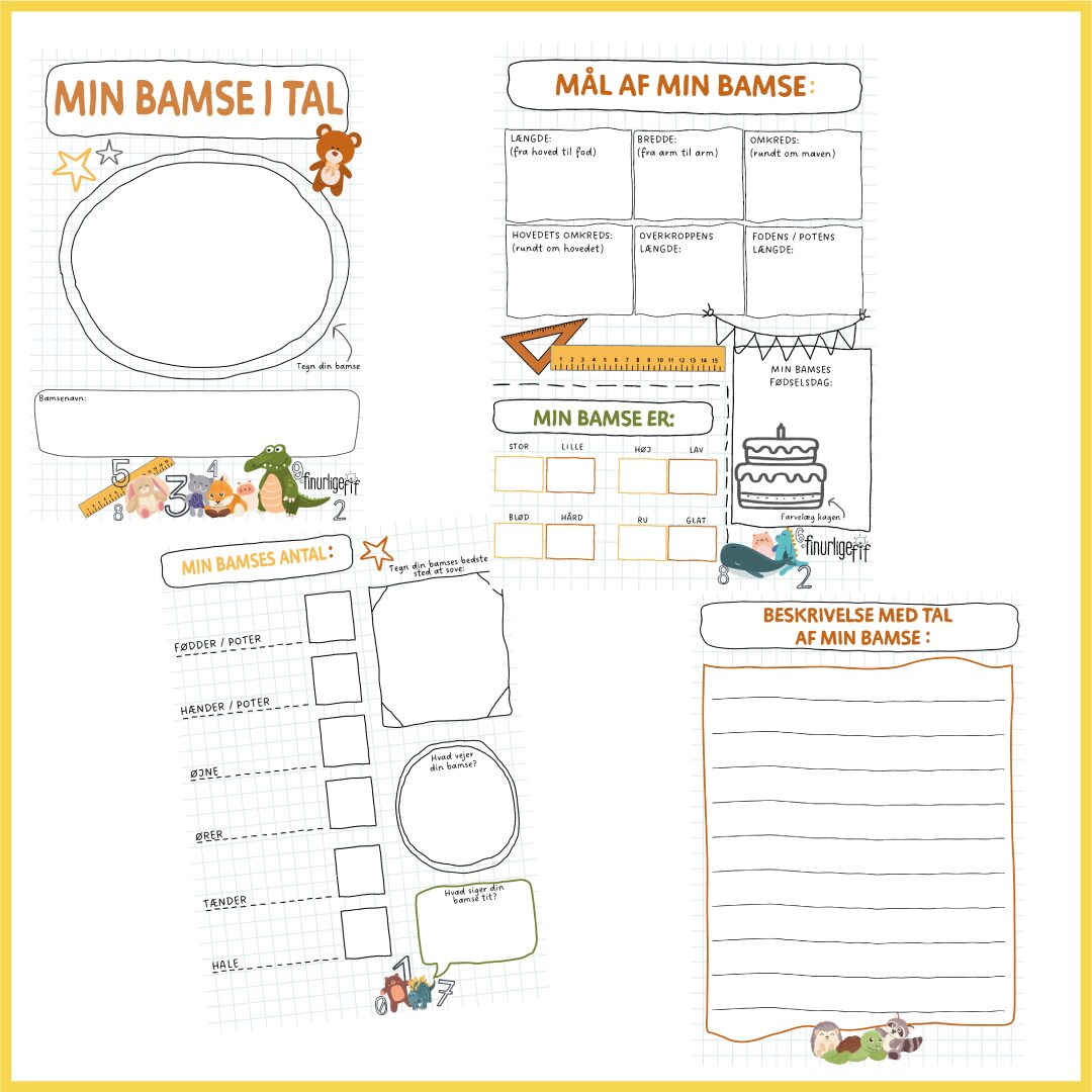 🔸 Foldebog: Et personligt hæfte, hvor eleven registrerer oplysninger om sin egen bamse – måler, tegner og skriver små fakta.