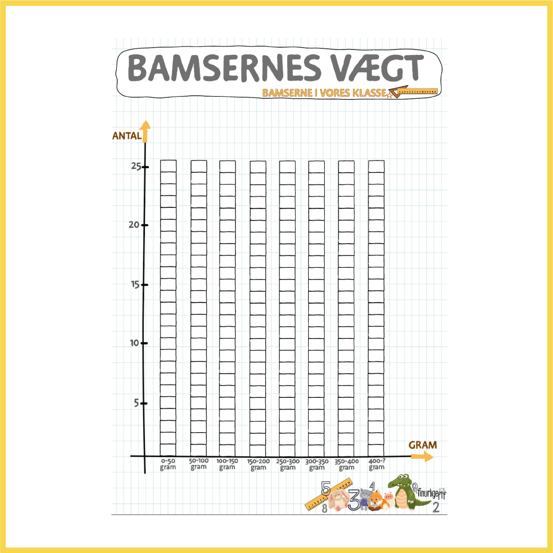 Hvordan ser det egentlig ud, hvis hele klassen tager deres bamser med i skole? Og hvad sker der, når vi måler, vejer og sammenligner dem?