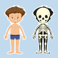 Vendbart puslespil med ydre kropsdele på den ene side og skelet på den anden 🔄