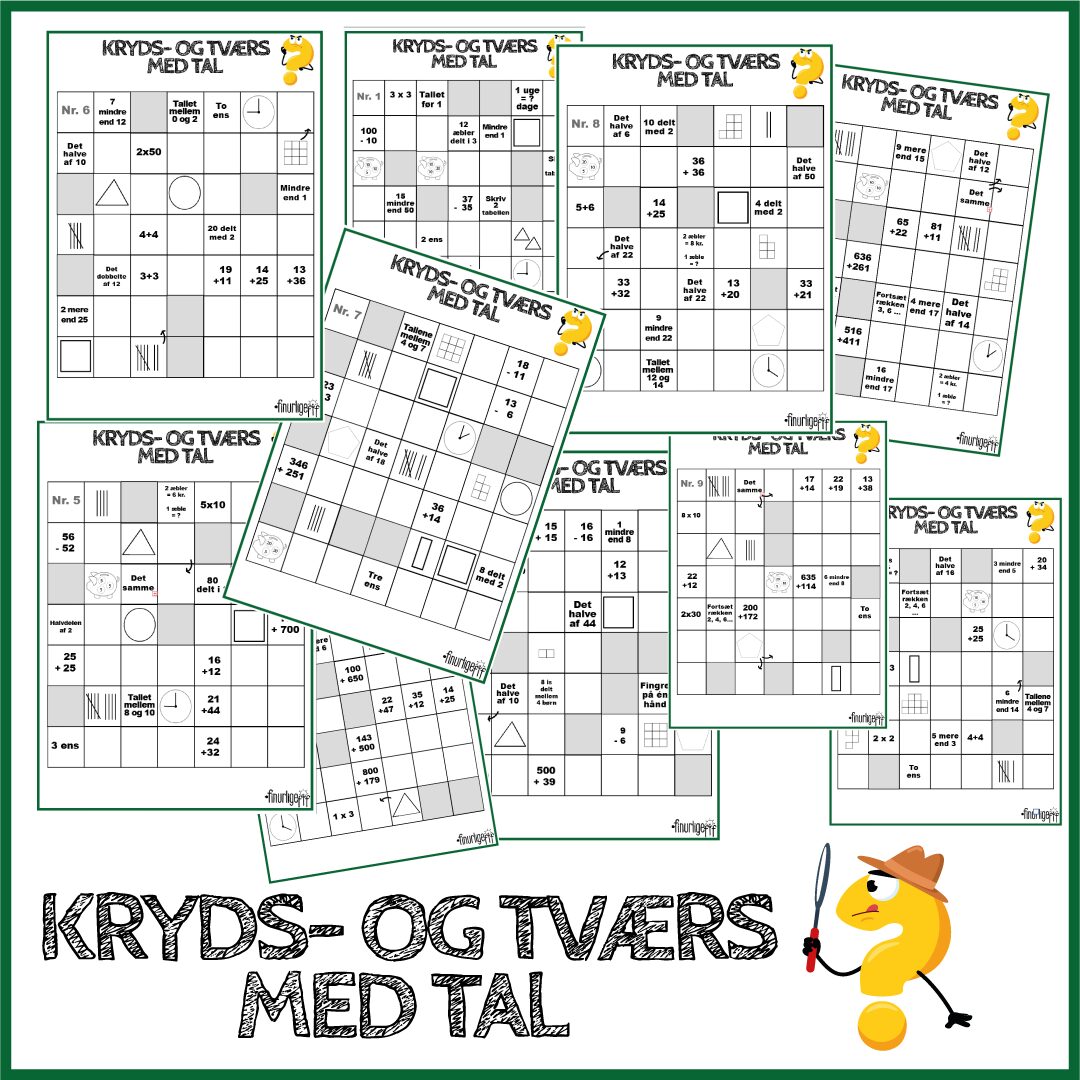 Træn regnearter og logisk tænkning med 10 finurlige kryds-og-tværs-opgaver! Perfekt til børn i indskolingen og begyndende mellemtrin – både i værksteder, som ekstra træning og til nysgerrige regnehoveder derhjemme.