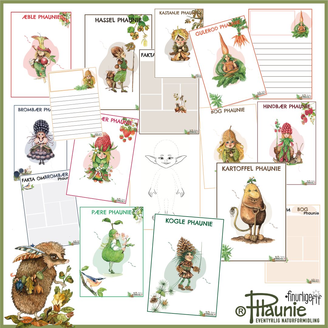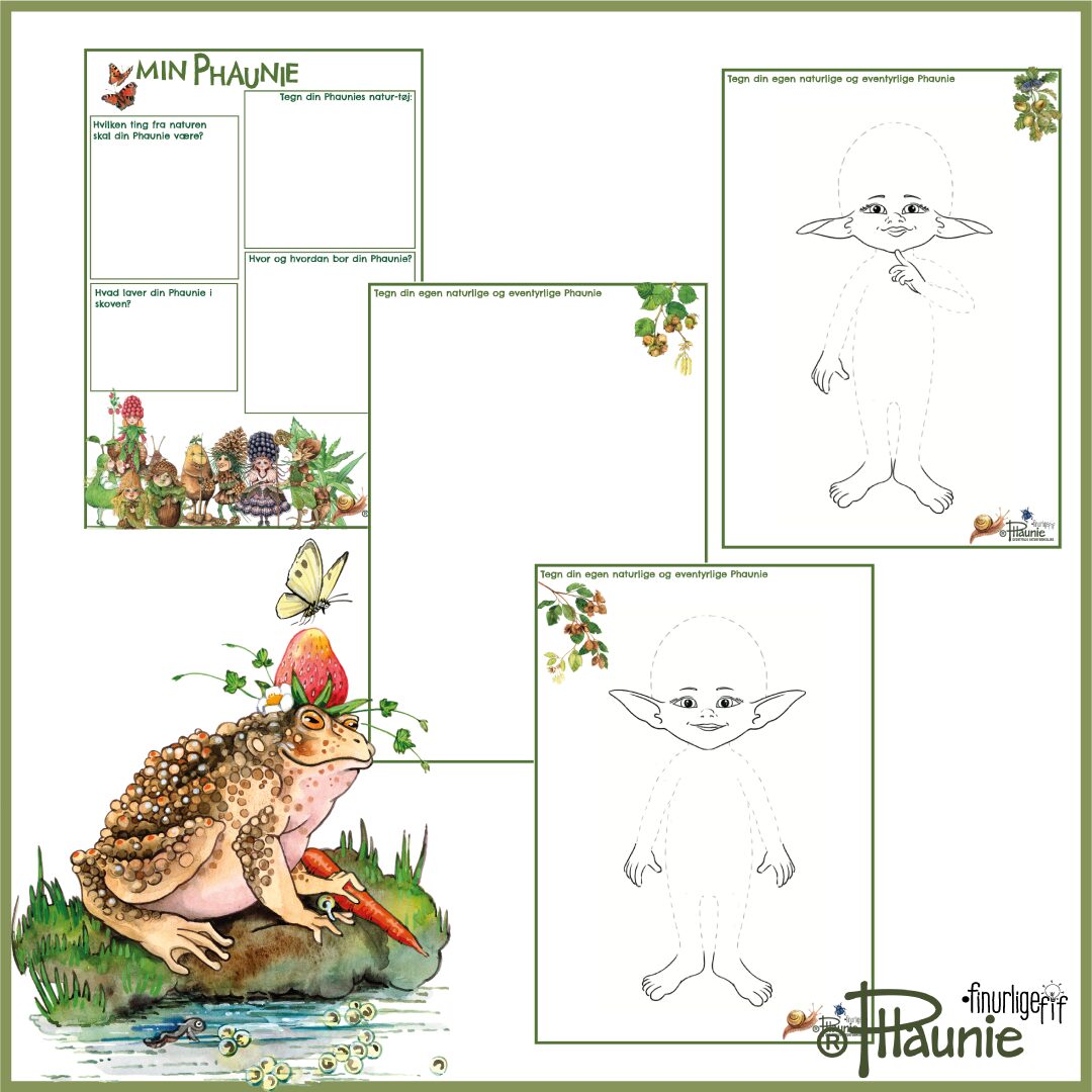 – Lav din egen Phaunie – kreativt materiale hvor eleverne designer deres egen figur med naturinspiration (fx bosted, naturting og liv i skoven)