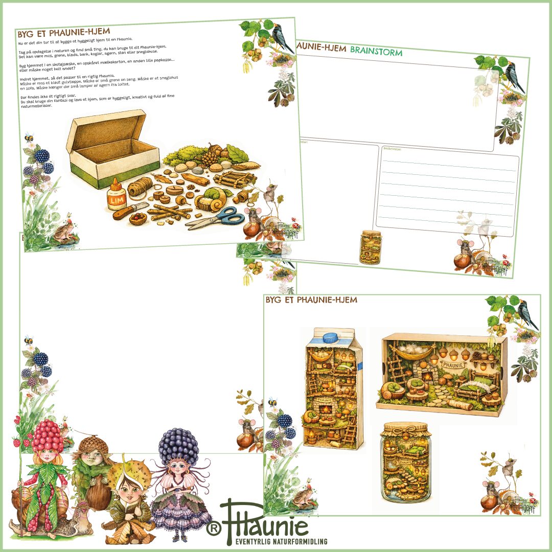 – Phaunie-hjem – byg et hjem til en Phaunie med naturmaterialer som blade, kogler og grene