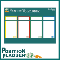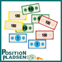 Positionspladsen er et brætspil, hvor I skal lege med og træne positionssystemet. Spillet er inspireret af MATADOR. Det handler om at samle penge, løse udfordringer, købe huse og bytte sine huse til større huse, så man endeligt kan få fyldt sin byggeplads. I skal arbejde med 1’ere, 10’ere, 100’ere og 1000’ere.