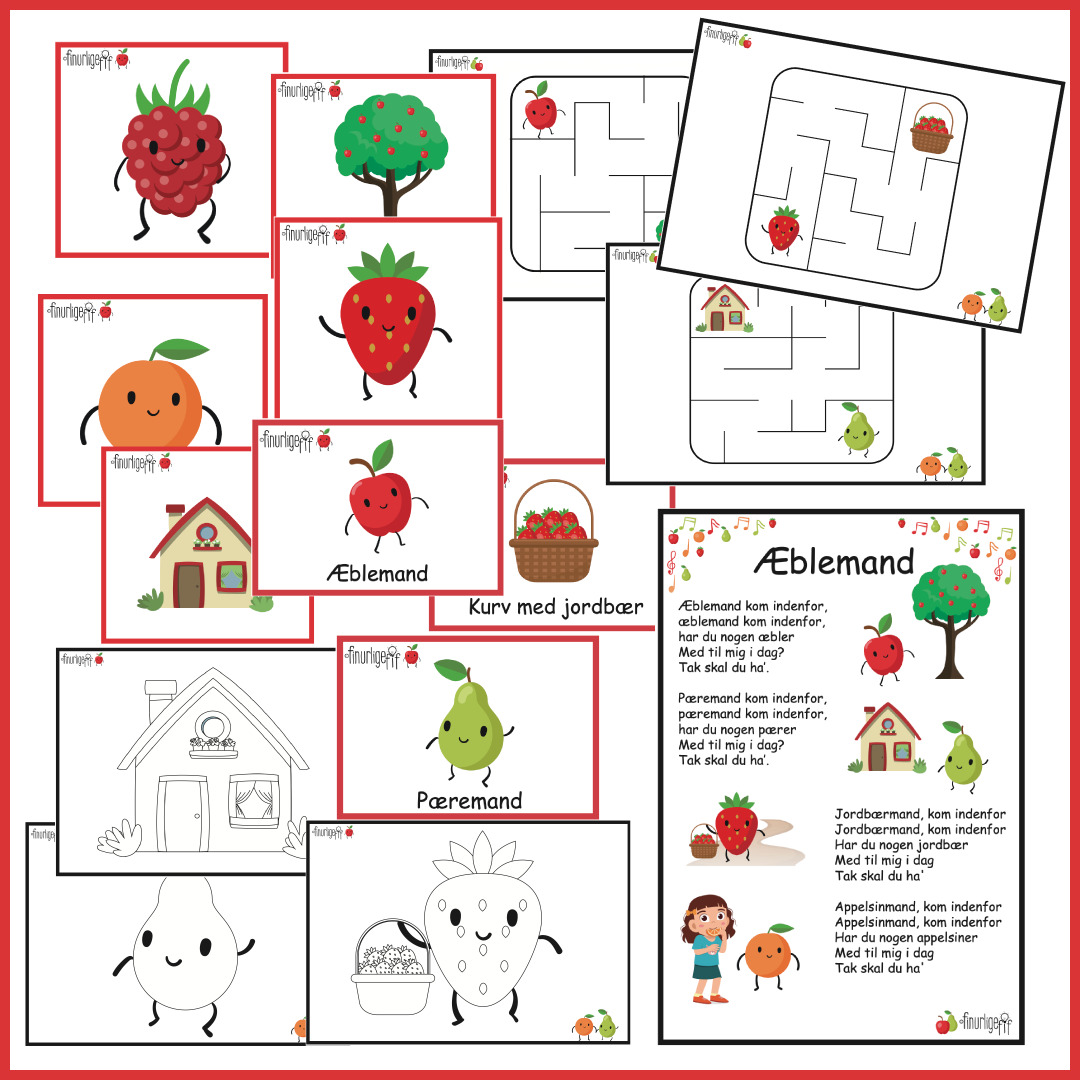 Denne finurlige pakke er en uvurderlig støtte til sangen Æblemand og giver en visuel og engagerende tilgang til sangen 🍎