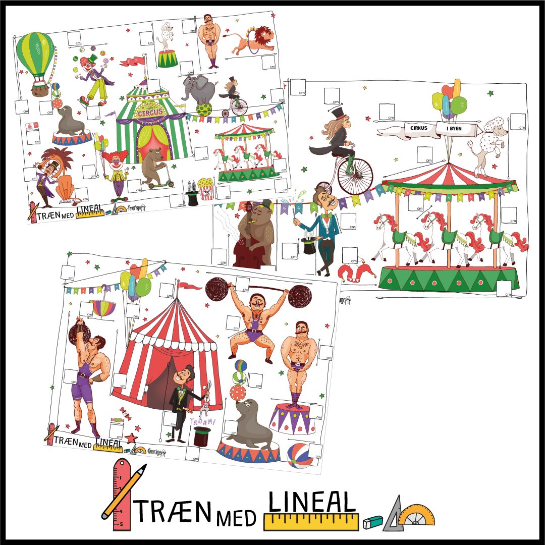 Mål og sammenlign med Cirkuspakken! Tre store plakater fyldt med cirkusmotiver gør arbejdet med lineal sjovt, konkret og legende.
